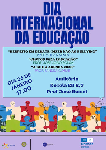 A propósito do Dia Internacional da Educação, celebrado no dia 24 de Janeiro, a Escola EB 2,3 Prof. José Buisel, enquanto Escola Associada da UNESCO desde 1991, realizou, no dia 26 de Janeiro, entre as 17.00 e as 18.30, um encontro com pais e encarregados de educação, em articulação com o projeto "Entre Nós" da Biblioteca Escolar. Esta iniciativa visou expandir o diálogo e a participação das famílias, concretizando na prática os princípios da Agenda 2030 e reforçando que os Objetivos de Desenvolvimento Sustentável (ODS) só se concretizam plenamente com o envolvimento ativo de todos os membros da comunidade educativa.